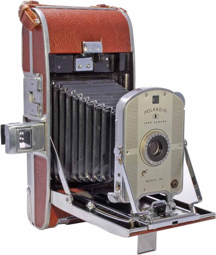 The Polaroid Model 95 (known as a "Land Camera" after its inventor Edwin Land) entered the market in 1947. It used a patented chemical process to create finished positive prints from the exposed negatives in under a minute.