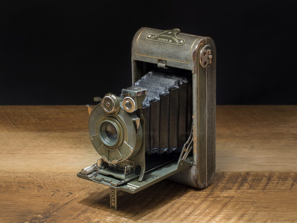 The Kodak camera was a simple box camera with a fixed-focus lens and single shutter speed. It was at a pretty low price, appealing to the average customer.